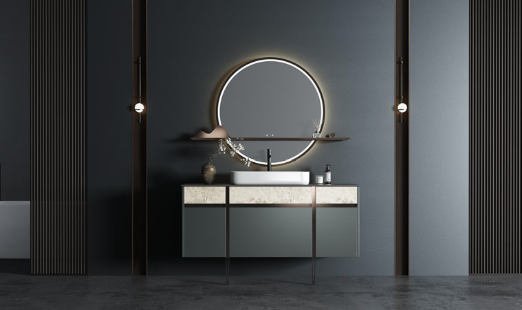 وحدة الموبيليا عبارة عن قطعة من أثاث الحمام تحتوي على مغسلة بالإضافة إلى أرفف أو أدراج بالأسفل