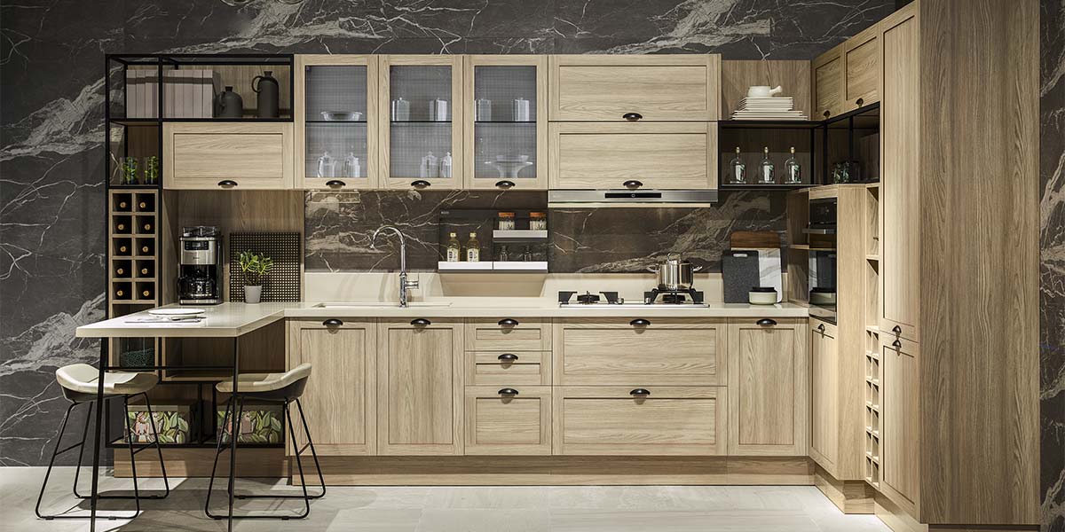 الخشب الطبيعي مطابخ الخشب الطبيعيتوفر مظهرًا دافئًا وريفيًا، مما يخلق جوًا مريحًا وجذابًا في المطبخ. إنها تأتي بتشطيبات مختلفة، من الفاتح والطبيعي إلى الداكن والغني، وتتوافق بشكل جيد مع المواد والتشطيبات الأخرى.