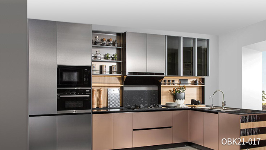 خزائن المطبخ بدون مقبض بطبقة نهائية من الصفائح المعدنية OBK21-017