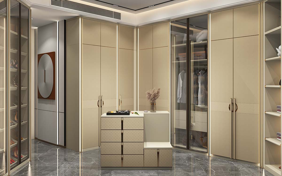The L-shaped walk-in wardrobe is one of the most common forms of walk-in wardrobes for Housing units and condo apartments.