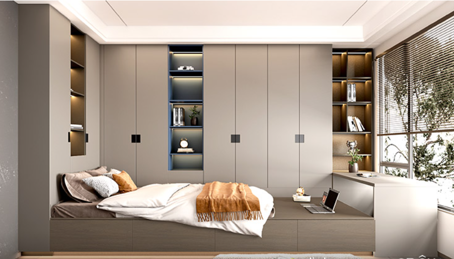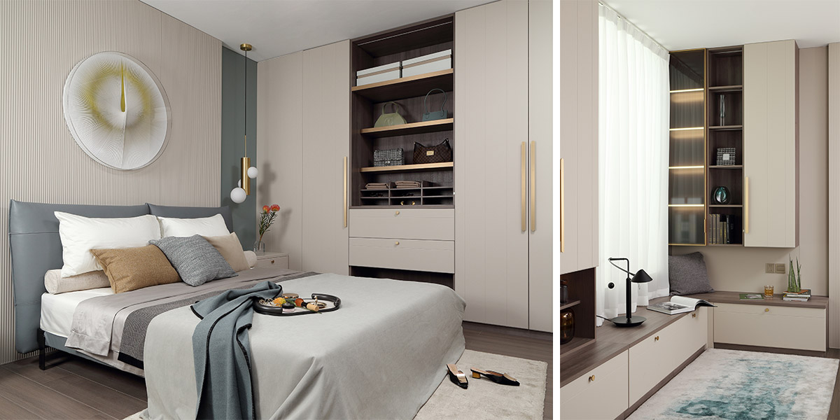 We recommend the L-shaped wardrobe for one to get the sensation of a walk-in closet (with the wardrobe also serving as a barrier) while yet making the most of a little amount of space.