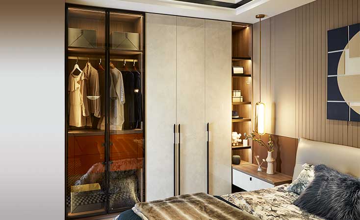 Acrylic is among the most expensive cabinet finishes. An acrylic-finish wardrobe is not suitable for spaces with children or pets since it is easily scratched.