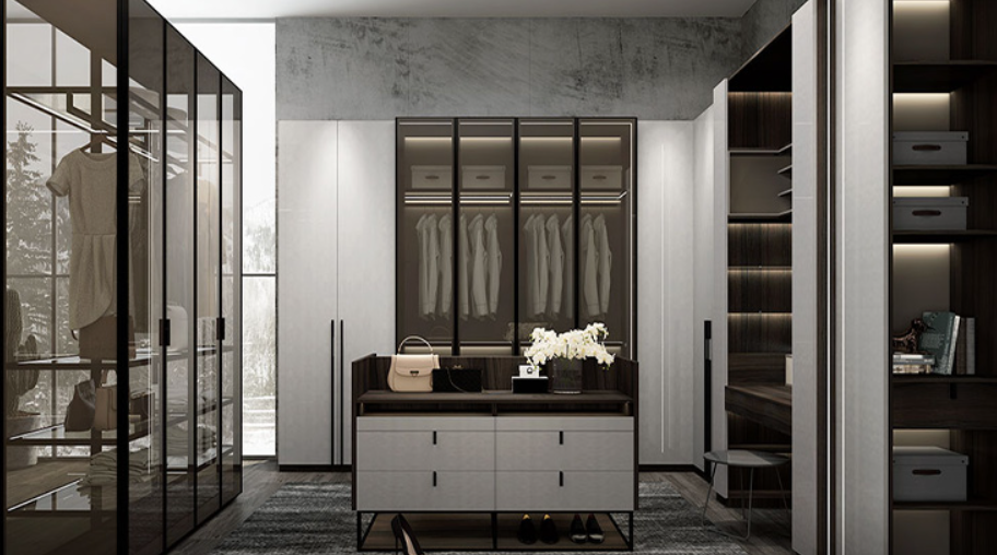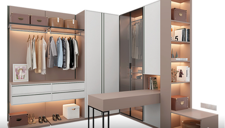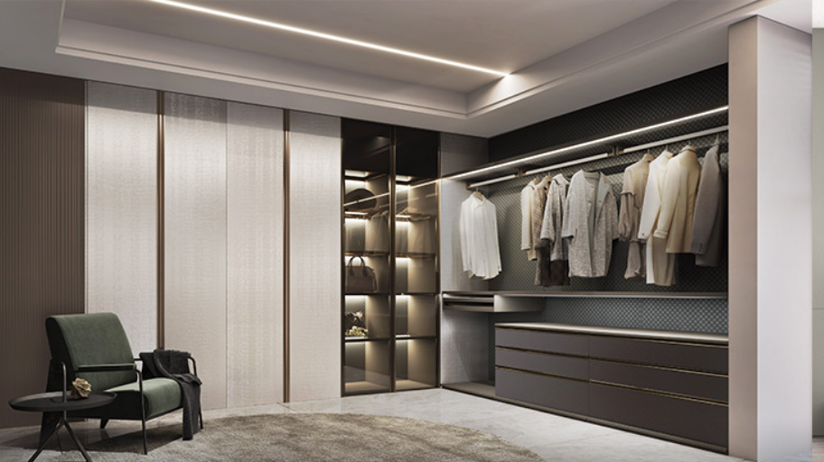 The L-shaped walk-in wardrobe is one of the most common forms of walk-in wardrobes for Housing units and condo apartments.