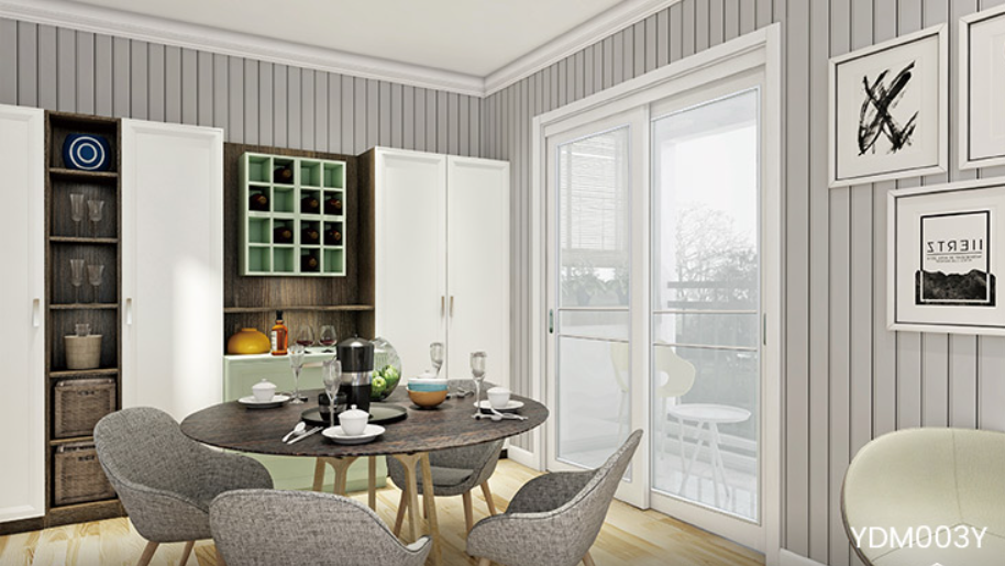 The panel in pocket doors is buried in a ‘pocket’ in the wall. The slab is totally concealed from view when fully expanded. It saves room while opening and does not impede furniture movement or placement. This type of structure may be used in the kitchen, living room, dining room, and other areas.