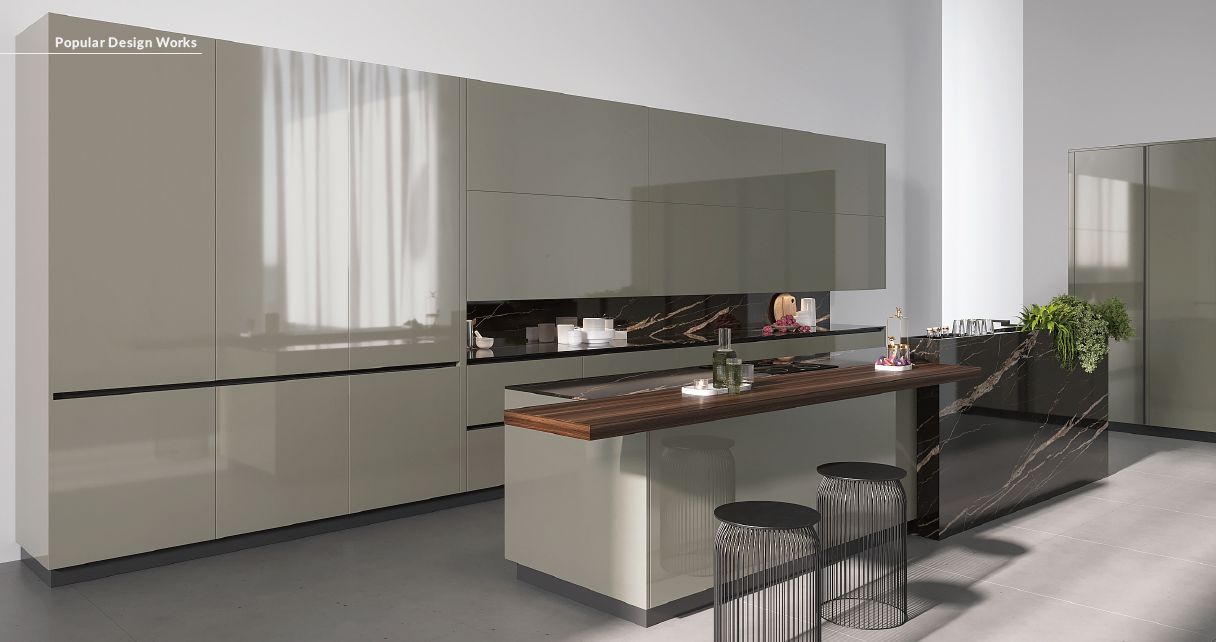 Lacquer Finish: Lacquer is a matte or high-gloss finish that provides a smooth surface to kitchen cabinets. It is typically applied using a spray gun and offers excellent durability, scratch resistance, and water resistance.