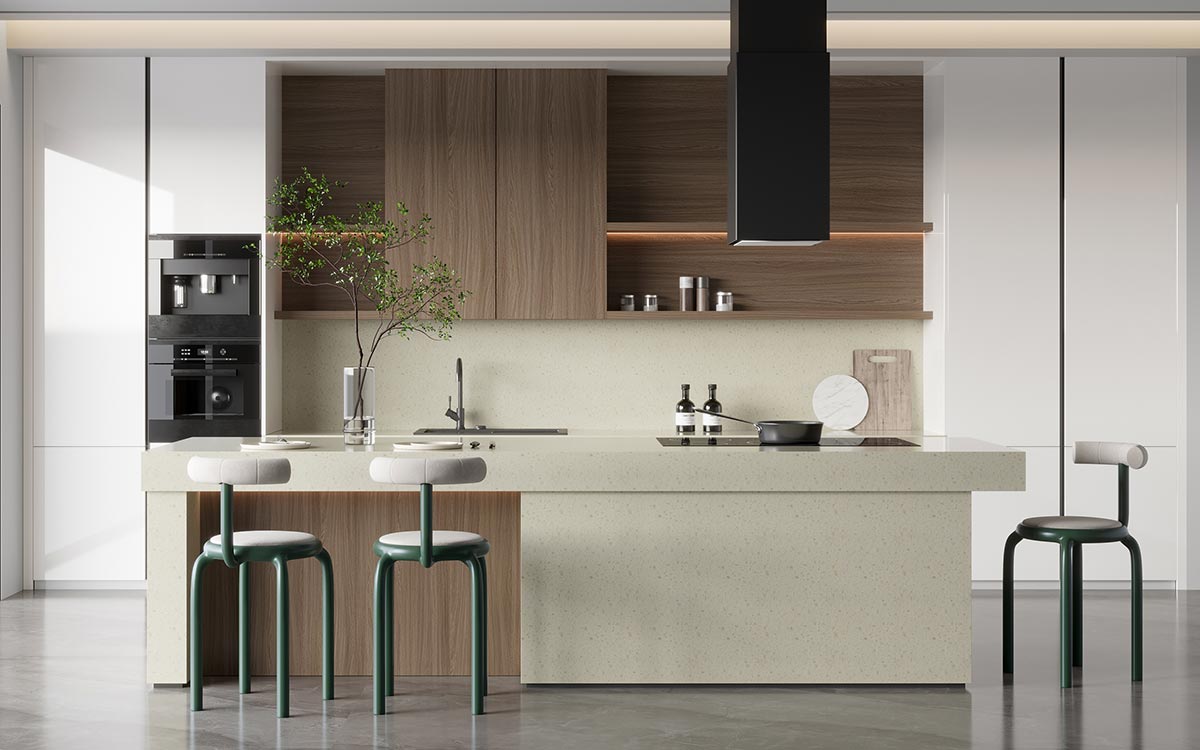 Melamine Finish: Melamine is a type of thermosetting plastic often used as a finish for kitchen cabinets. It is available in various colors and patterns and has good performance of resistance to scratches, stains, and heat.