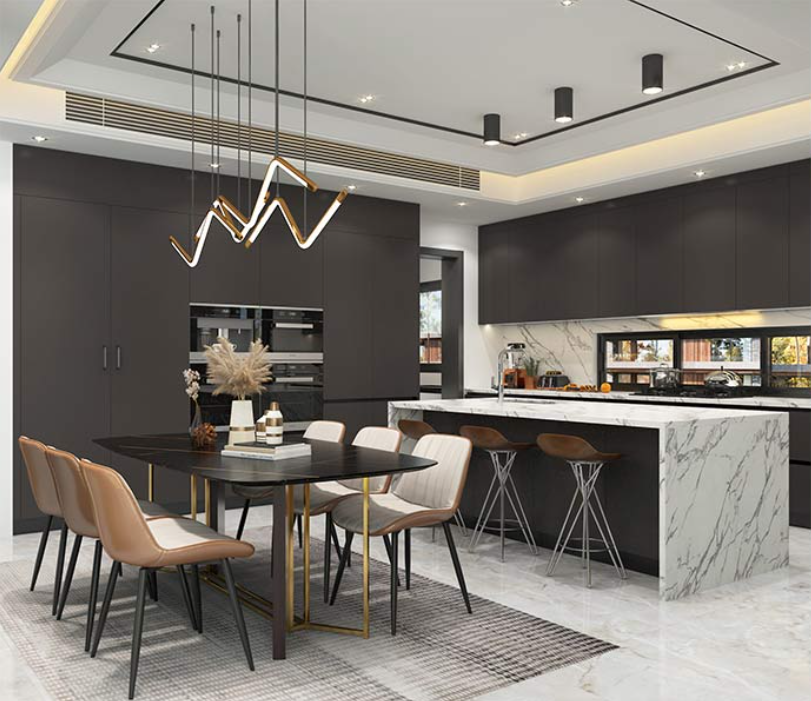 Lacquer Finish: Lacquer is a matte or high-gloss finish that provides a smooth surface to kitchen cabinets. It is typically applied using a spray gun and offers excellent durability, scratch resistance, and water resistance.