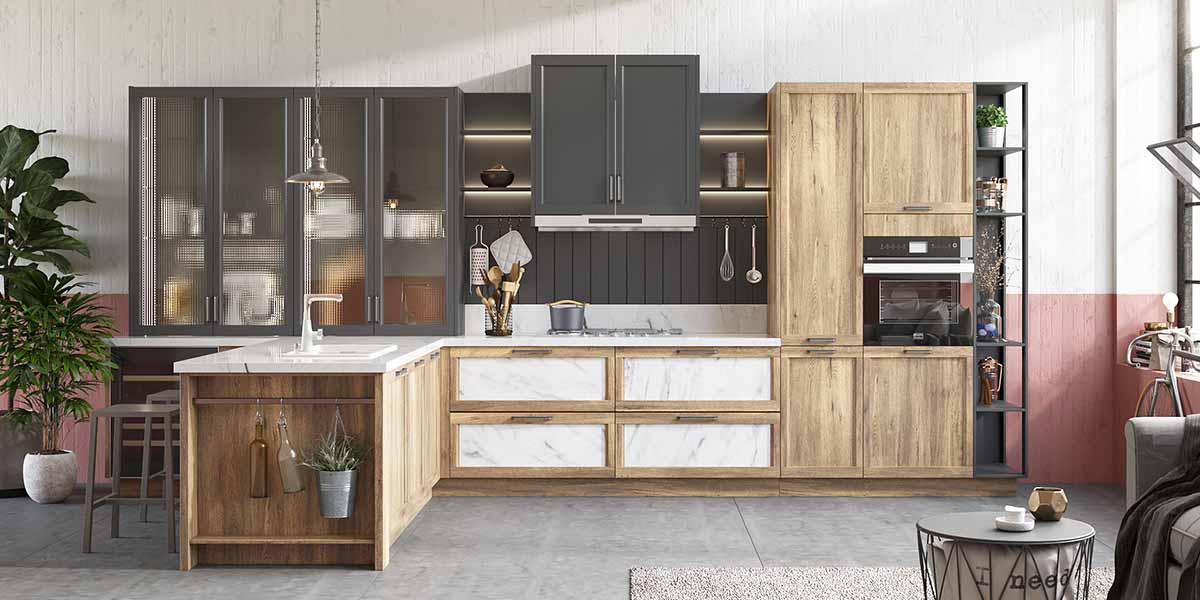 Natural Wood: Natural wood cabinets offer a warm and rustic look, creating a cozy and inviting atmosphere in a kitchen. They come in various finishes, from light and natural to dark and rich, and pair well with other materials and finishes.