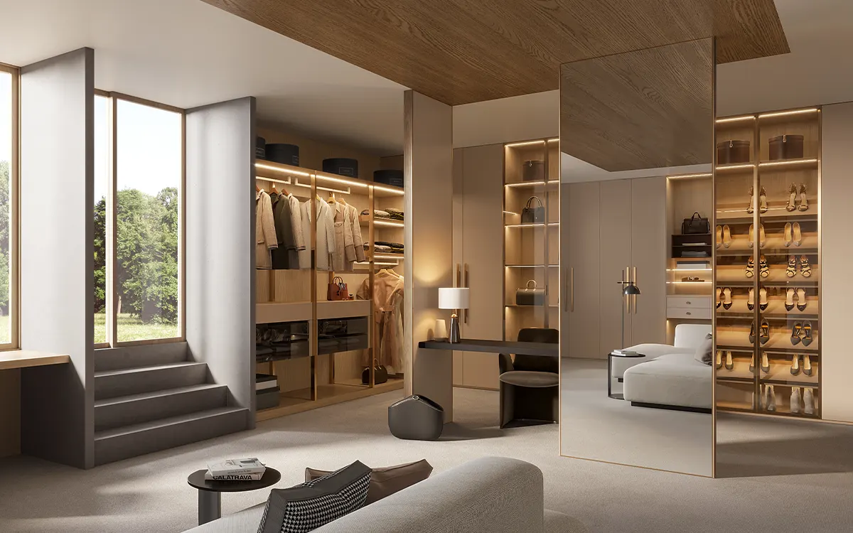 Oppolia is delighted to provide a diverse range of walk-in wardrobe designs to help you manage both your clothing and your life. Our custom walk-in wardrobes are created with you in mind, so you can be confident that our wardrobes will satisfy your demands in terms of aesthetics and flexibility.
